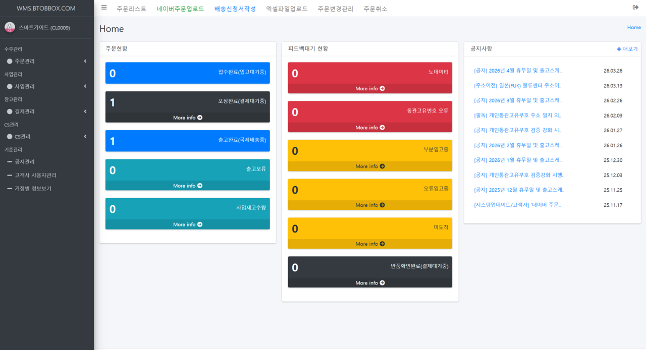 비투비박스의 배송대행 물류시스템 WMS